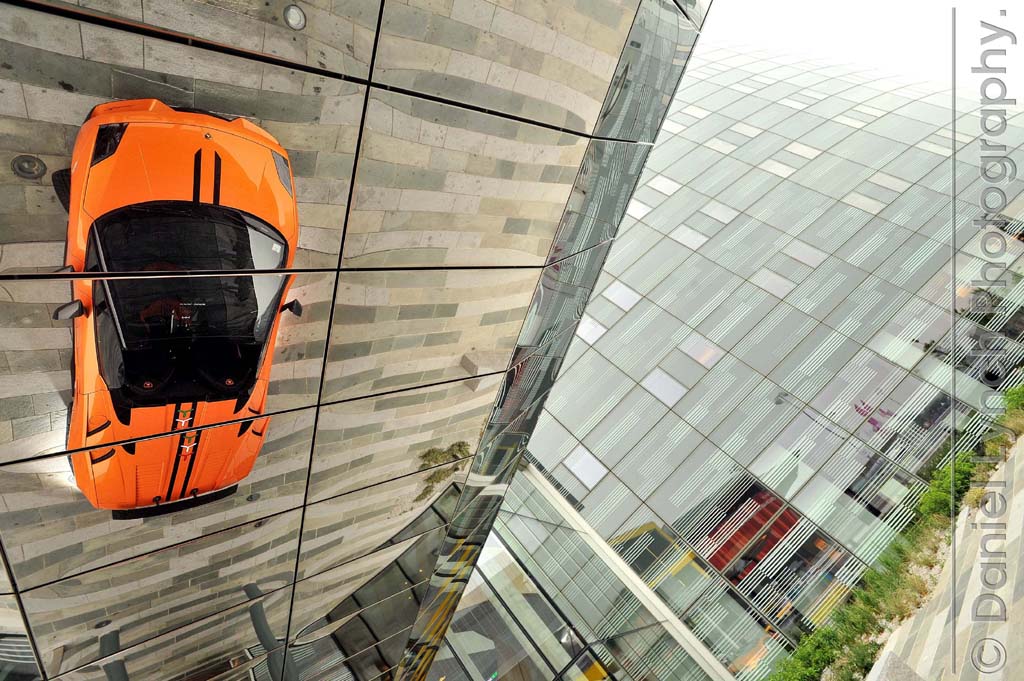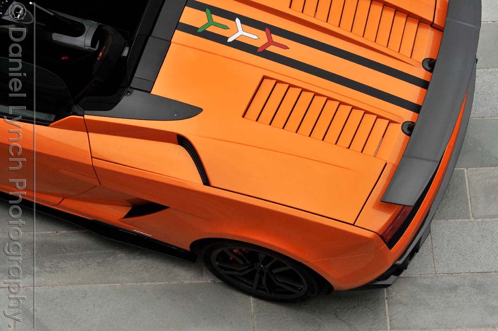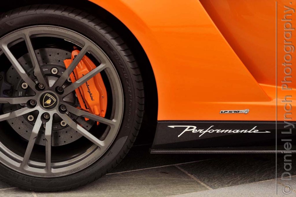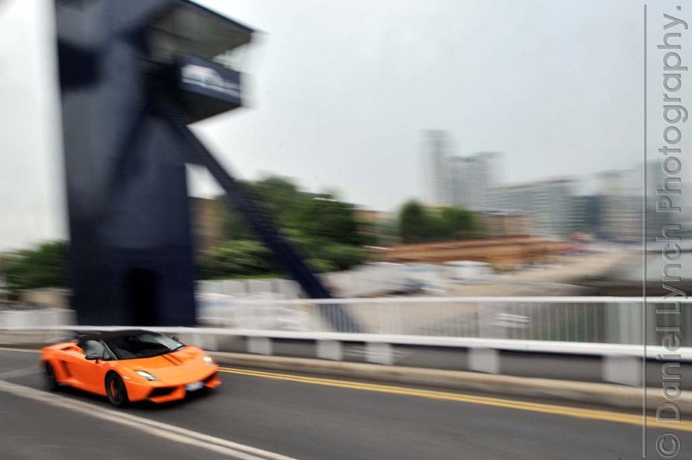 LYNCHPIXDaniel Lynch Photography presents: My favourite image shot over the past seven days. This week’s fave frame is of the Lamborghini Gallardo LP 570-4 Performante. Our shoot was due to take place in the sprawling greenspace that is Hyde Park, but with the shoot being on the eve of the Queen’s Diamond Jubilee celebrations, large swathes of the royal park were either closed or surrounded in unphotogenic mesh crowd barriers. After a quick brainstorm with my journalist, we decided as we had such a modern car, the best thing would be to use a background of similar suit, so we headed east to London’s answer to the 21st century metropolis; Canary Wharf & Docklands. The general concensus when shooting on public highways is that so long as you’re not blocking the thoroughfare & are using portable / handheld equipment, then you can shoot to your heart’s content. The problem that arises at Canary Wharf is that all of the roads within the complex itself are actually privately owner & run by Canary Wharf Management meaning permission is required and a pain to acquire, especially at the last minute. So I made a call to the lovely people at W Hotels whose newest development ‘aloft’ has recently completed at the nearby ExCel arena. They have a great PR team whom i’ve had the pleasure of working with on numerous occasions. They are well aware of the ever-changing requirements of the press photographer & always happy to help. We couldn’t have wished for a better location filled with neutral stonework & angular reflective surfaces perfectly complimenting the electrifying orange supercar. Even the mirrored canopy over the entranceway made for a spectacular photograph making the car appear to be driving on the ceiling… Thankfully the threatening rain held off & we got some amazing detail shots highlighting the ridiculously angular contours of the bodywork It was a real pleasure to shoot photographing well from just about every angle. It had one last trick up it’s sleeve; as the sun went down, we fired up the engine & on popped the lights, perfectly matching the rest of this very 21st century machine. Last job of the day was to get a selection of tracking shots showing the car in motion, so we headed back across to the isle of dogs for the big finish. Believe me when I tell you this machine sounds every bit as good as it looks… ENJOY!