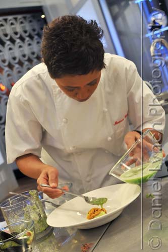Monica made it look very easy pulling together the dish in minutes before letting her guests have a go.