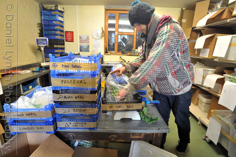 We were surrounded in produce all boxed-up ready for distribution all around the country. An amazing array of grenery from fresh sorrell & cress, to delicate mushrooms.