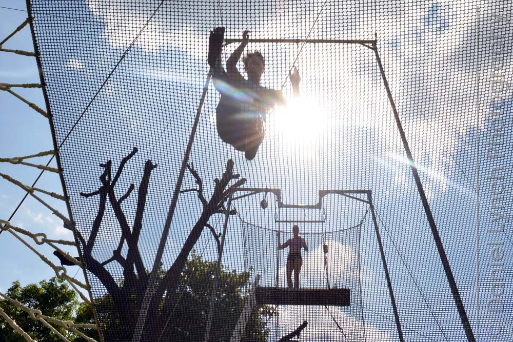 Once at the top, she was a little aprehensive to let go, but soon got into the swing of it.