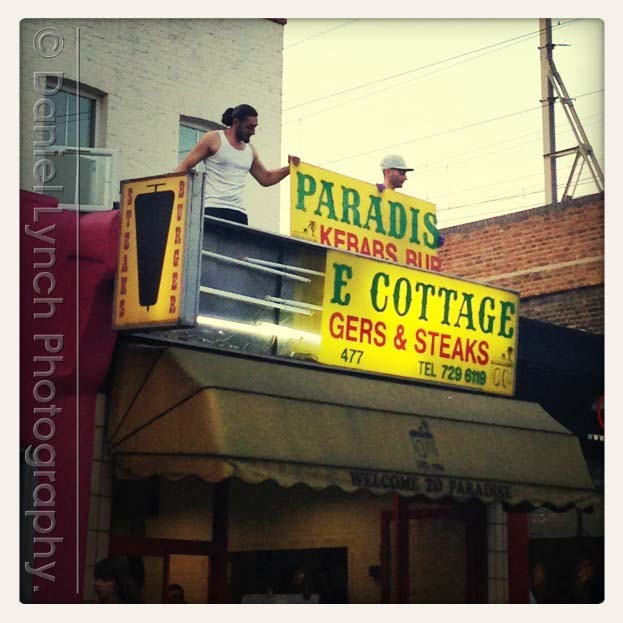5. I spotted these gents replacing their sign whilst sitting at a red light in Bethnal Green. Paradise it ain’t…