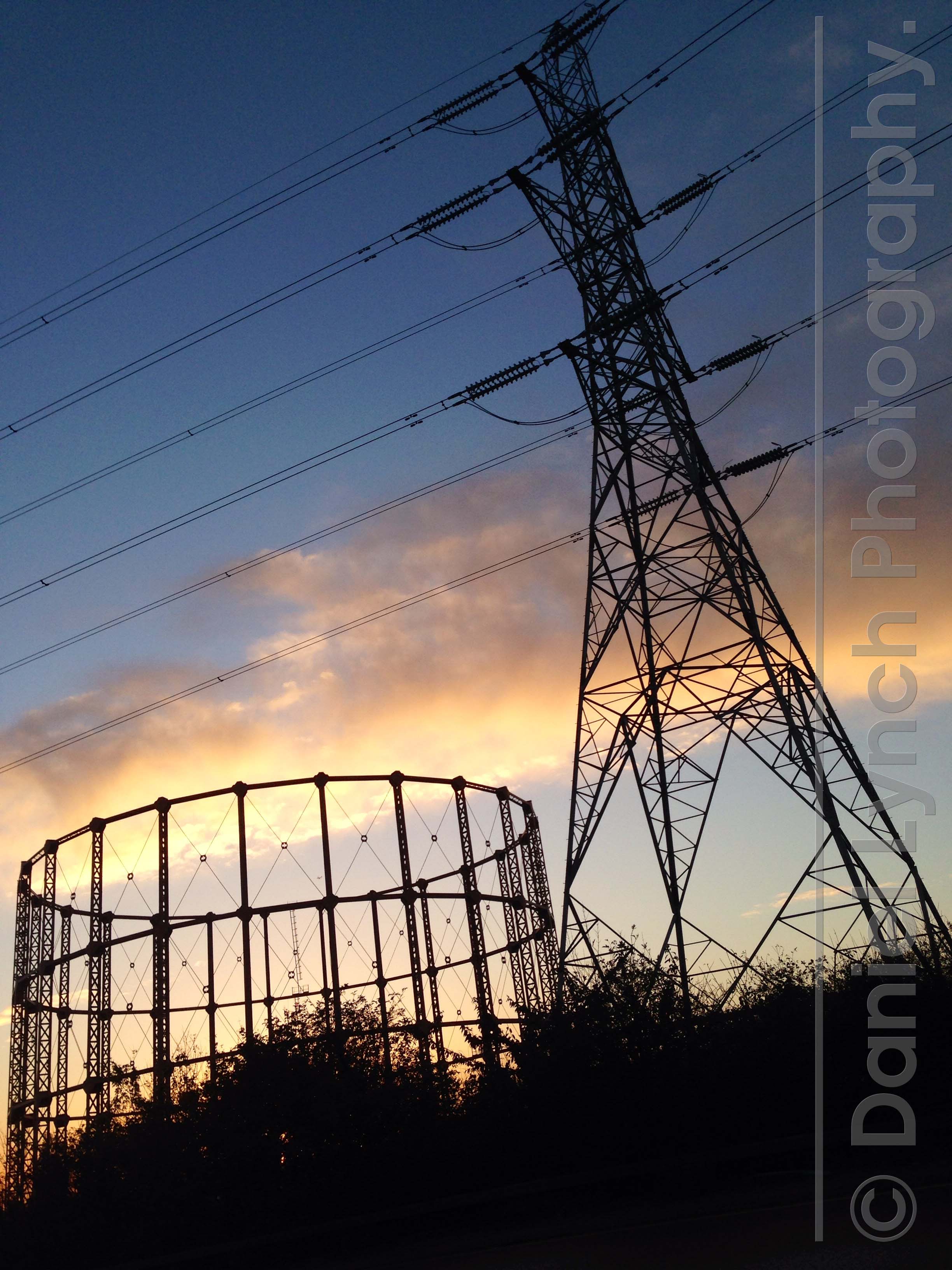 Dusk at the gas works, East London.