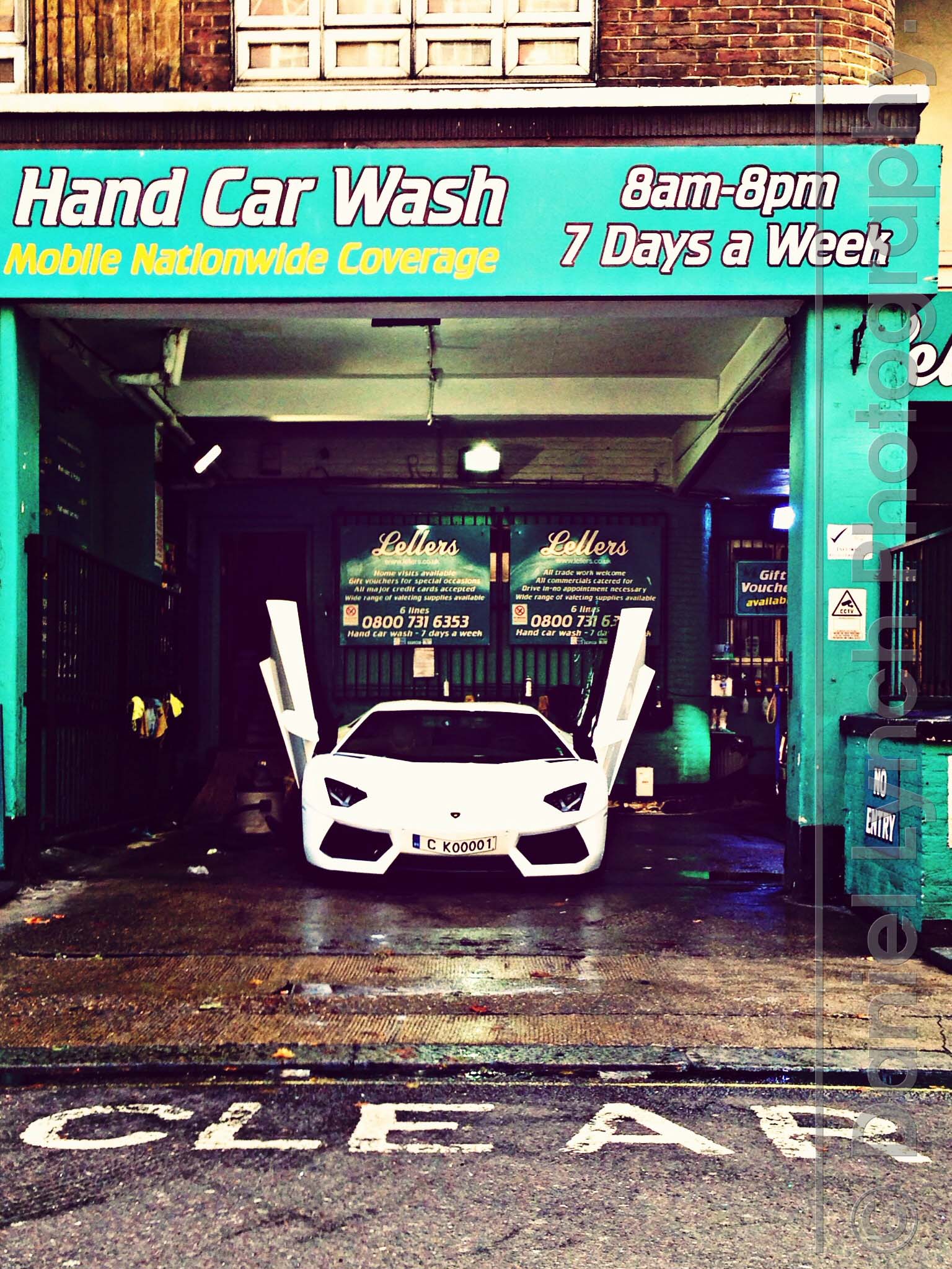I spotted this stunning Lamborghini at the car wash just off busy Edgware Road, London whilst sitting at the lights. One thing about photographers is our brains are never switched off- we’re always aware of our surroundings scouting for future locations & looking out for the unusual.