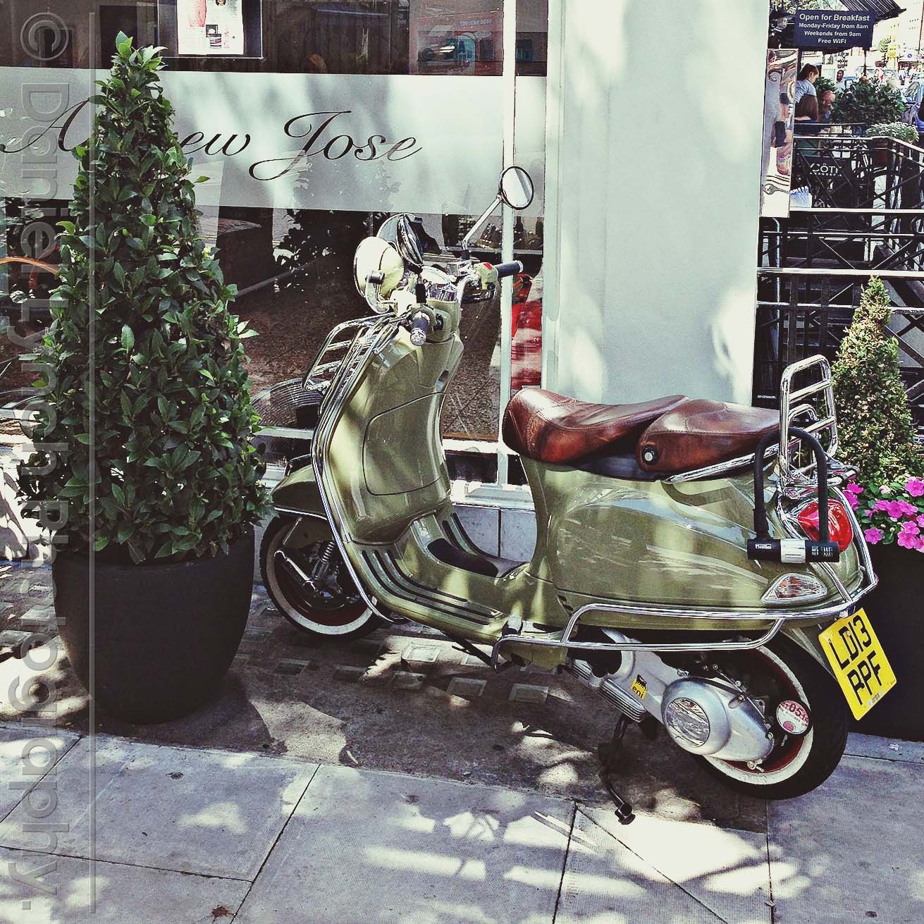 I spotted this colour co-ordinated restaurant & motorbike in Charlotte Street, West London.
