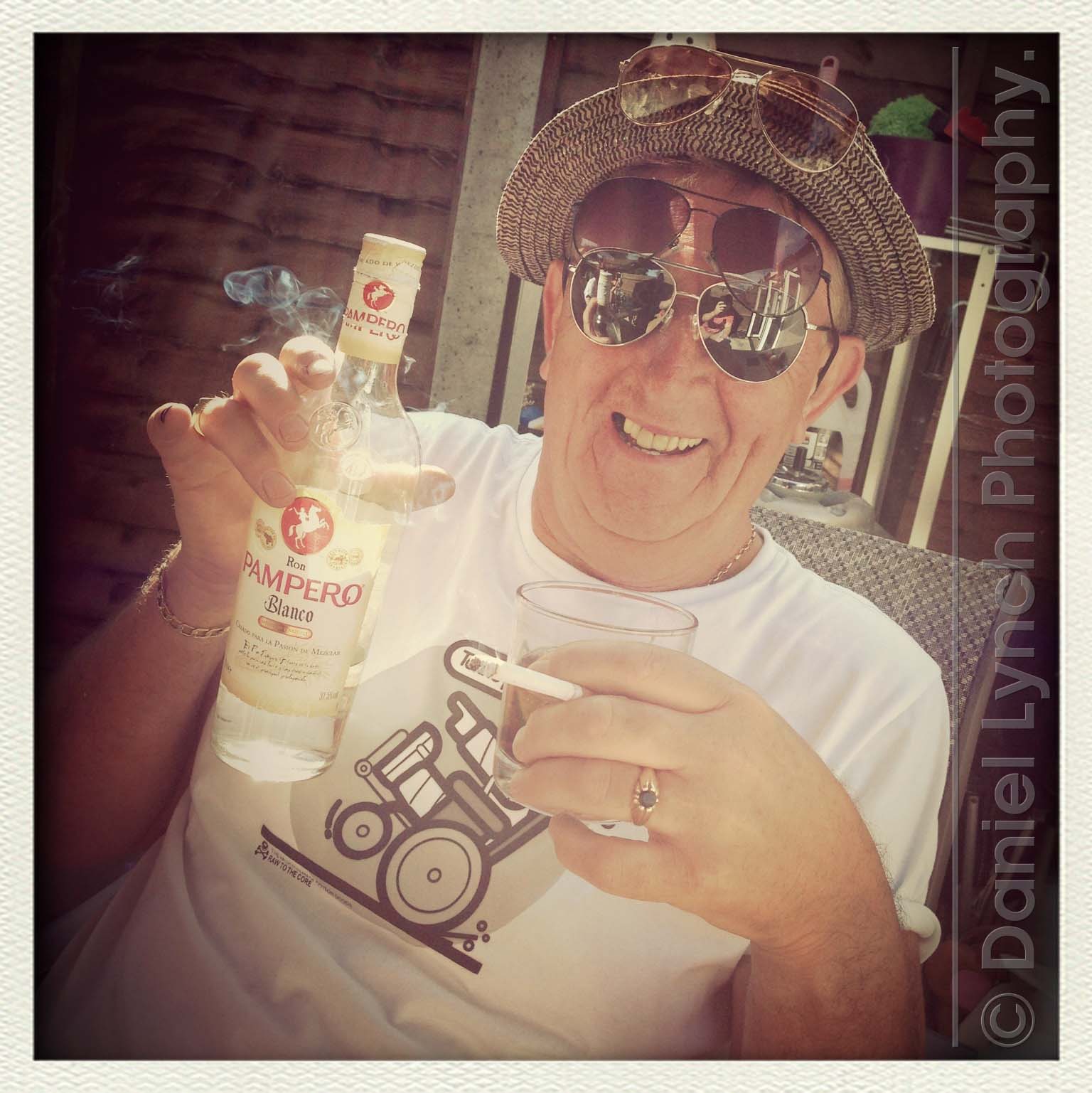 Last frame & we’re out with a smile- My loopy father-in-law Shay enjoying a spot of rum at a barbecue over the summer at my place, East London.