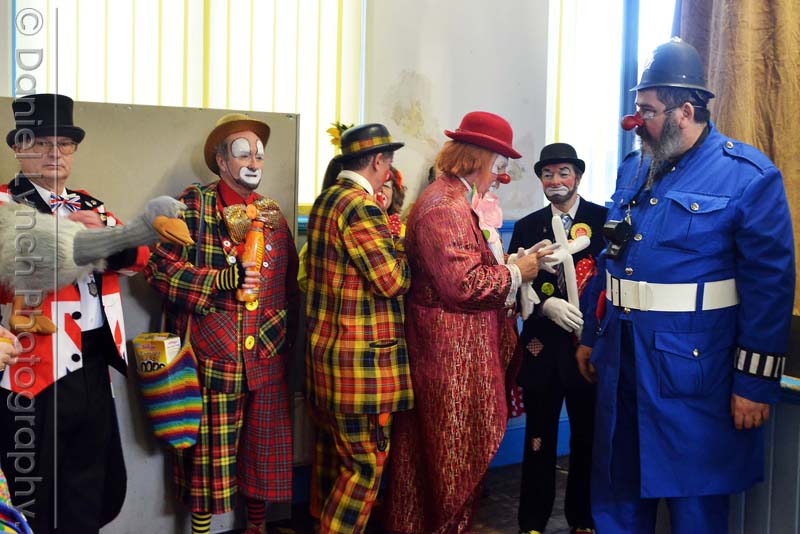 As the hall fills with well wishers, many of which are parents with young children, the attending clowns gather in a back room for a rousing chorus & private moment’s prayer.