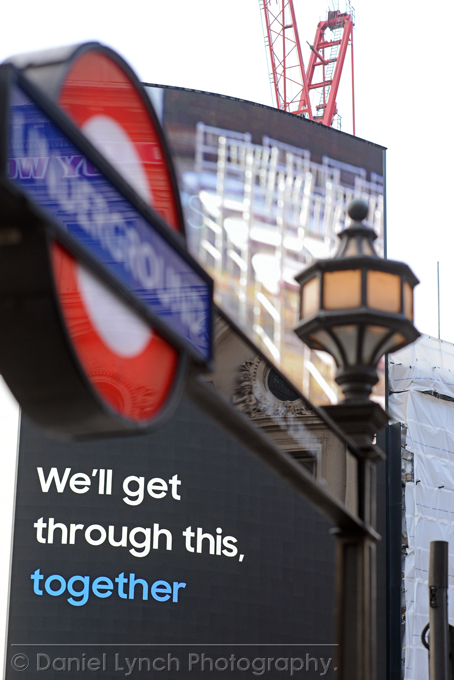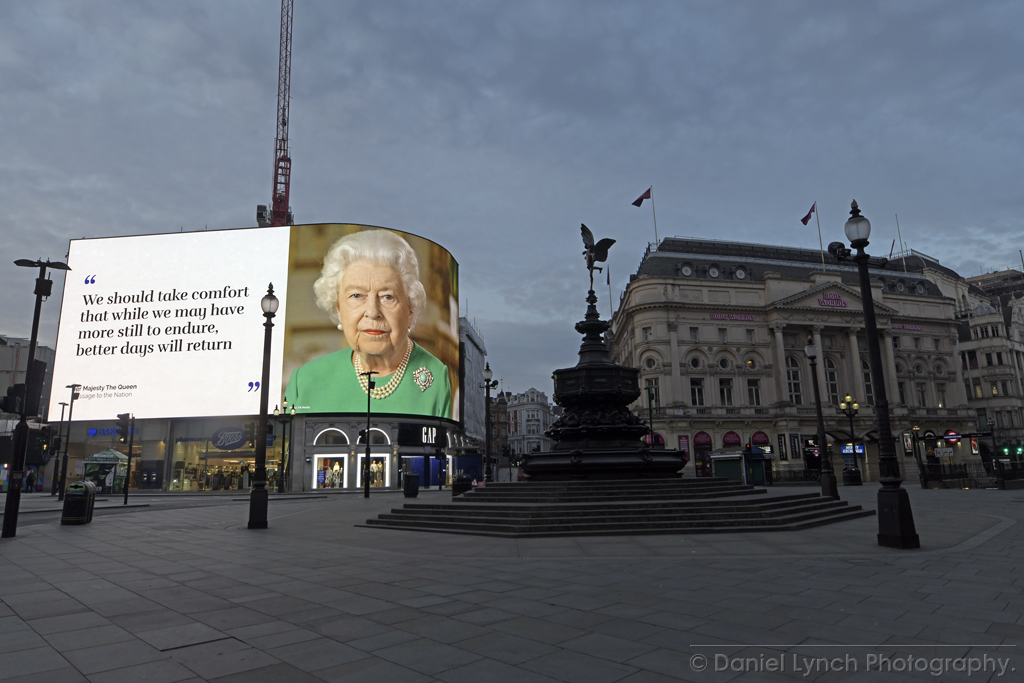 The Queen had her message of support wrapped around Piccadilly Circus