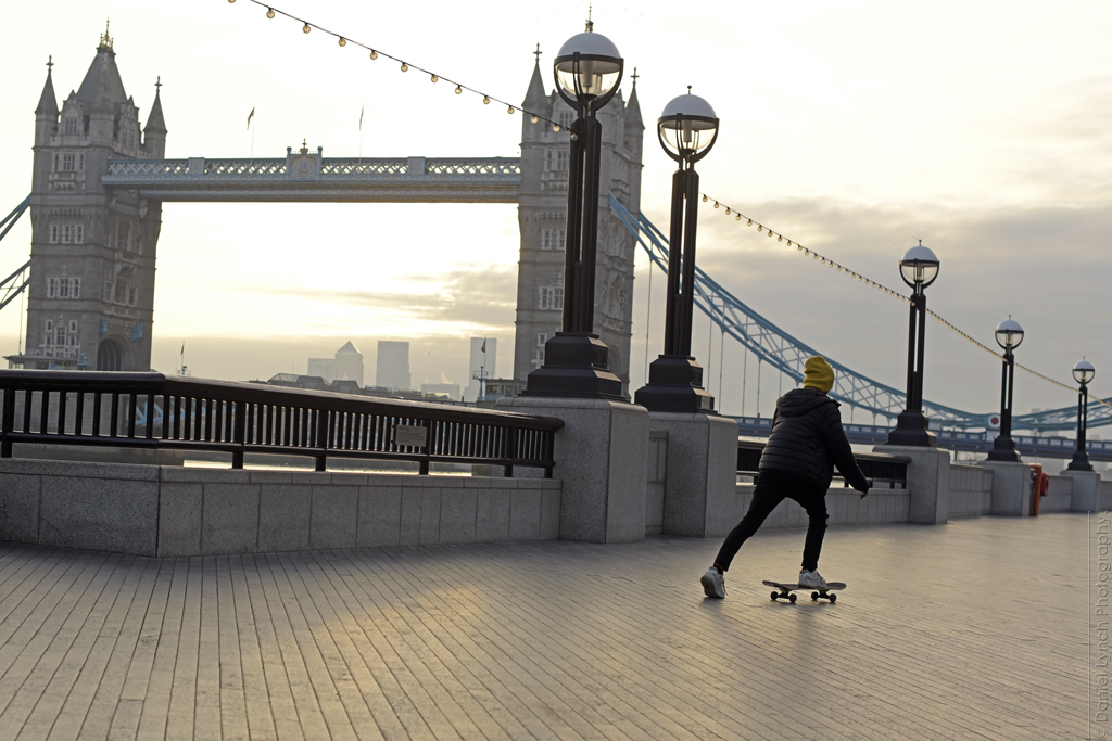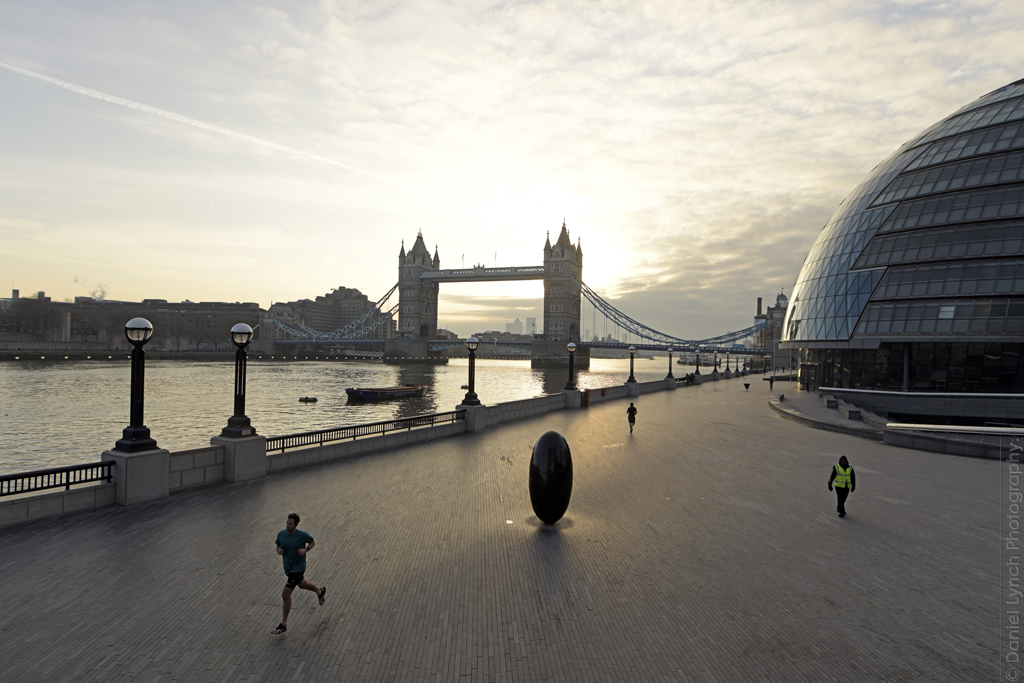 We were also allowed one form of exercise per-day for up-to an hour. And that’s where my own personal Covid story began. On the morning of Monday 23rd March 2020, I hauled myself up & out at the crack of dawn & headed for the Queen’s Walk on the southern embankment of the river Thames; a spot I knew was both popular with joggers, and one that afforded me a fantastic & iconic ‘London’ backdrop. As the sun rose from beyond Canary Wharf in the east, light streaked through the 100+ year-old landmark of Tower Bridge & I got my shots.