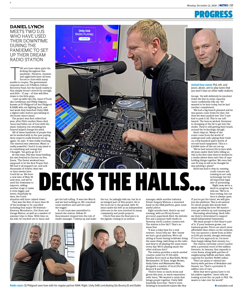 The strength & resilience of Phil, Jason & everyone else involved with this project has been incredible during these unprecedented times. Just two months into their foray on the airwaves, Unity DAB stepped in & hosted the epic ‘Dance Against Cancer’ event; yet another casualty of the pandemic.