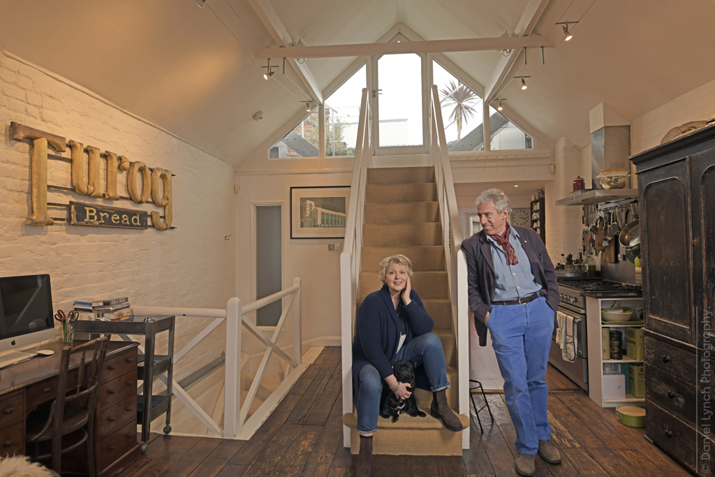 Art expert Kath Wood was my next subject. I photographed her at the gallery she owns & operates in Twickenham. The former public house has gallery space on the ground floor with artists’ quarters in the basement. Kath occupies the first floor; the ultimate live/work space…