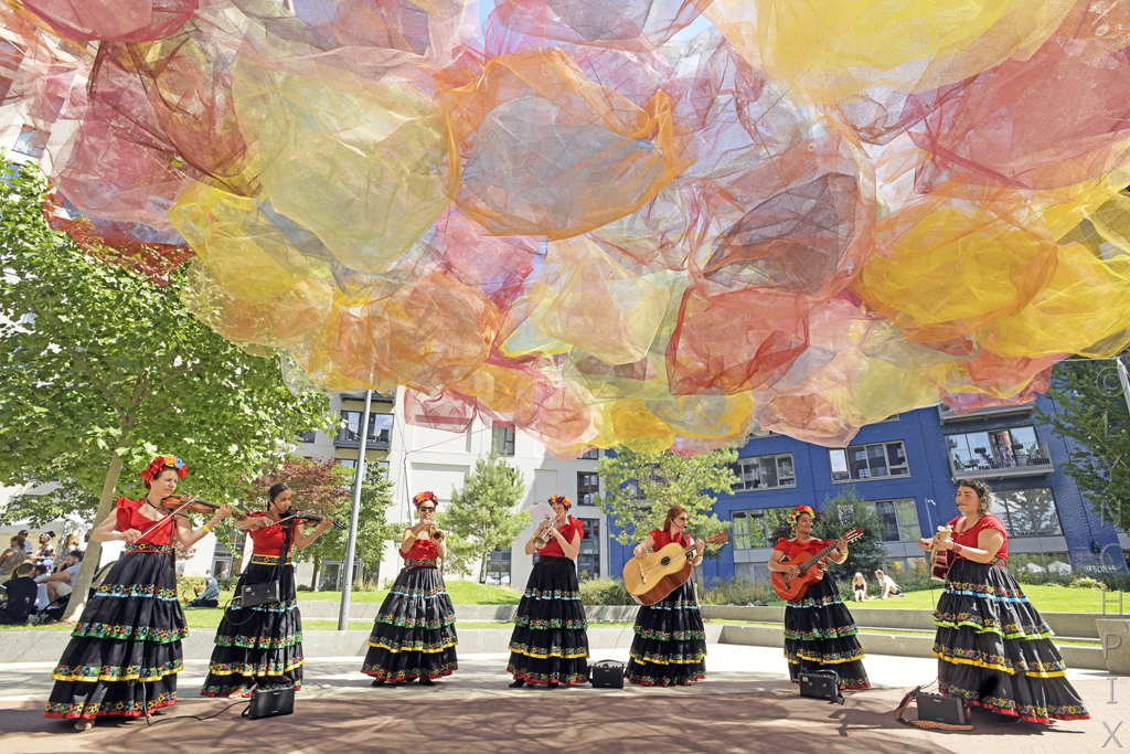I was a little closer to home for this weeks’ slice of summer fun at the Islander Festival in Canning Town, east London. Photographed is the all-female band Mariachi Las Adelitas performing beneath Rana Begum’s gorgeous piece “Catching Colour”, which forms part of The Line public art trail;