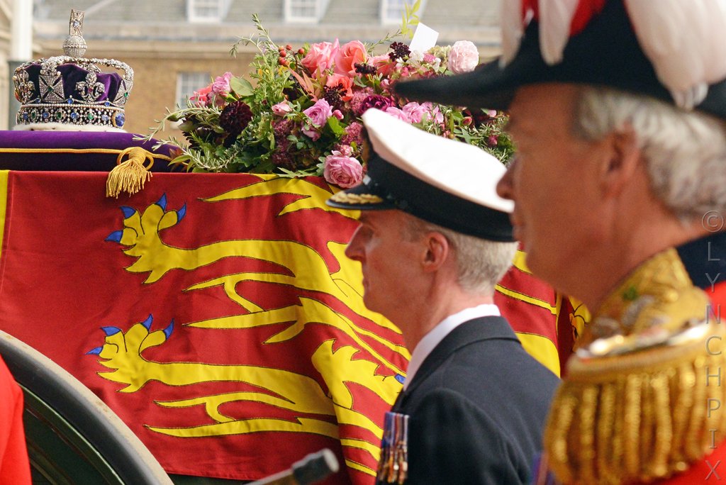 At Hyde Park Corner the coffin was placed in a modern motorised hearse before commencing it’s long journey west down the M4 motorway & out to Windsor Castle – her final resting place.