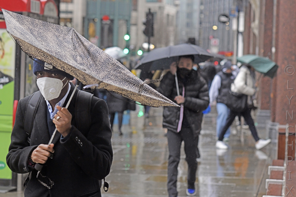 In typical British fashion, it was an absolutely miserable morning with pouring rain & heavy gusts turning umbrellas inside-out (pictured; commuters leaving Liverpool Street Station):