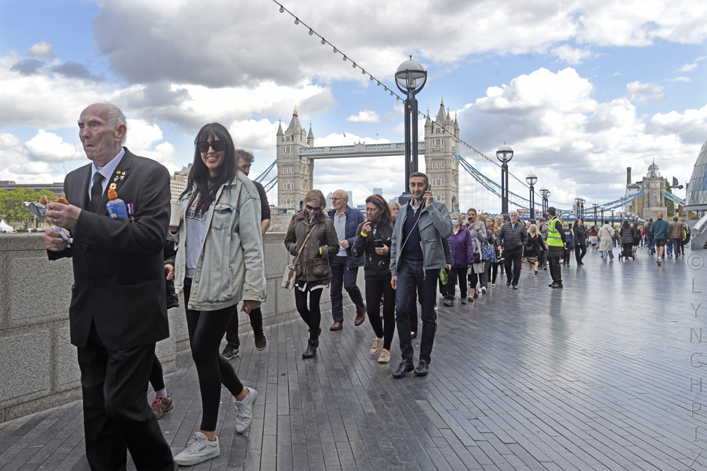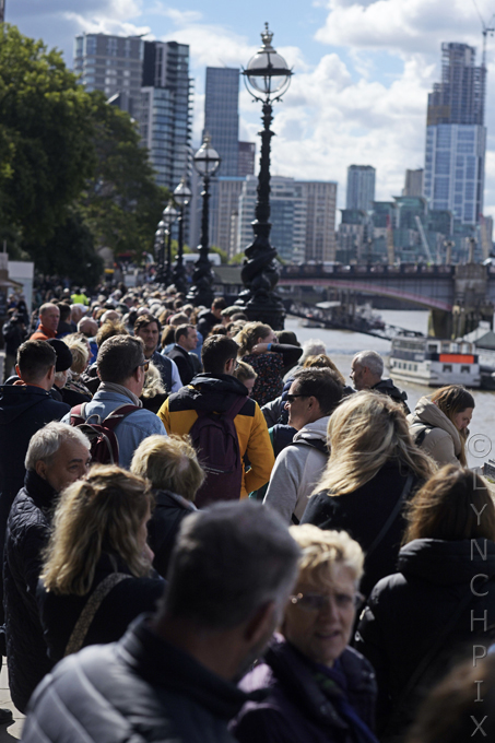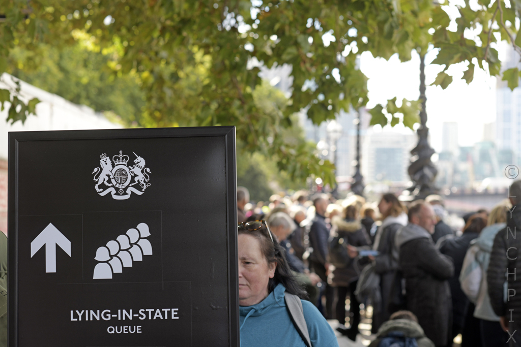 As I approached Tower Bridge & City Hall, mourners in the cue were being told it would be at least ten hours before they could pay their respects. At it’s peak, waiting times were well over 30 hours…
