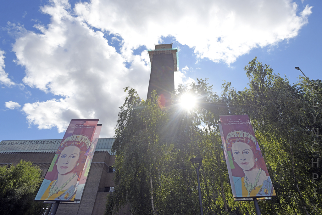 And outside Tate Modern, art-deco flags of Her Majesty flew majestically against the crisp, blue sky